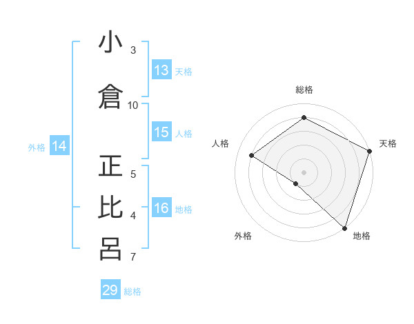 小倉 正比呂さんの天格は13画の5点!