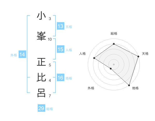 小峯 正比呂さんを姓名の画数から五運を鑑定