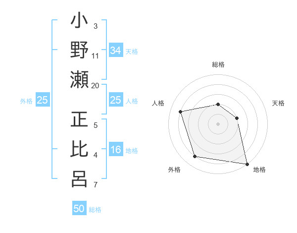 小野瀬 正比呂さんの総格は50画の2点!