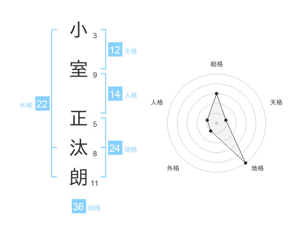 小室 正汰朗さんの天格は12画の1点!