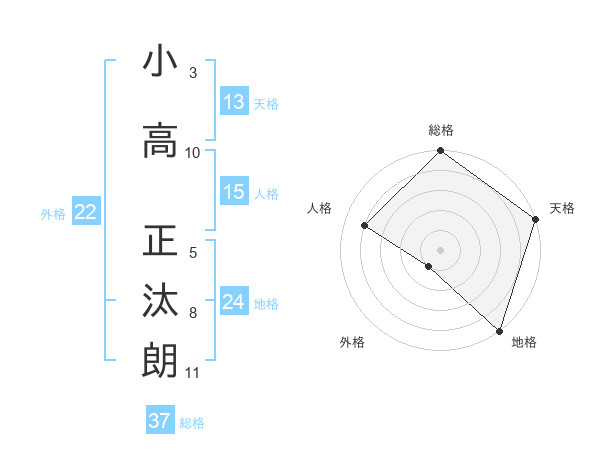 小高 正汰朗さんの総格は37画の5点!