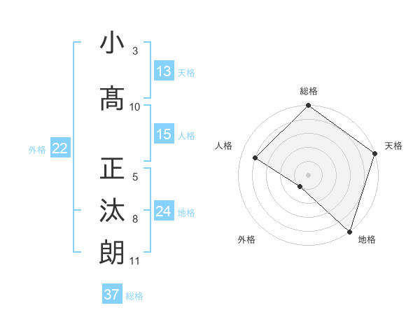 小髙 正汰朗さんの総格は37画の5点!