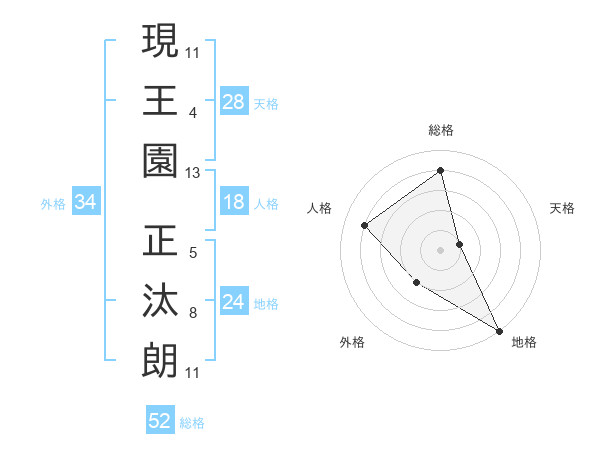 現王園 正汰朗さんを姓名の画数から五運を鑑定