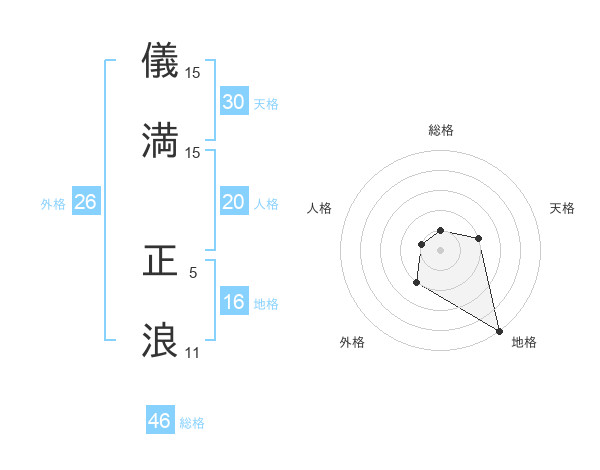 儀満 正浪さんの天格は30画の2点!