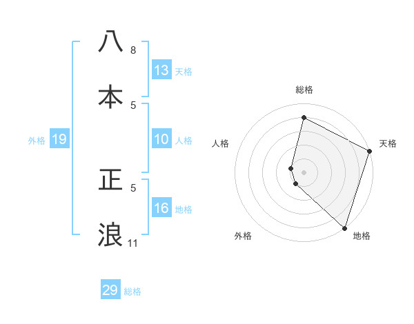 八本 正浪さんの天格は13画の5点!