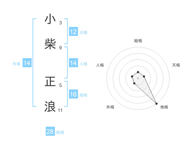 小柴 正浪さんの地格は16画の5点!