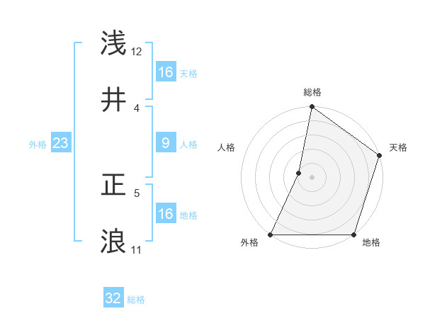 浅井 正浪さんを姓名の画数から五運を鑑定
