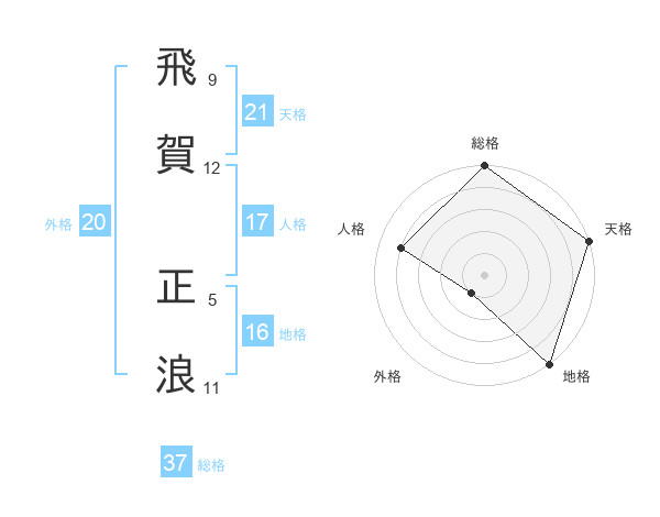 飛賀 正浪さんを姓名の画数から五運を鑑定