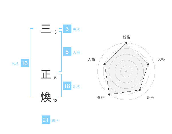三 正煥さんの総格は21画の5点!