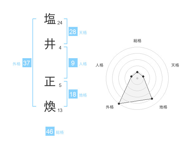 塩井 正煥さんを姓名の画数から五運を鑑定