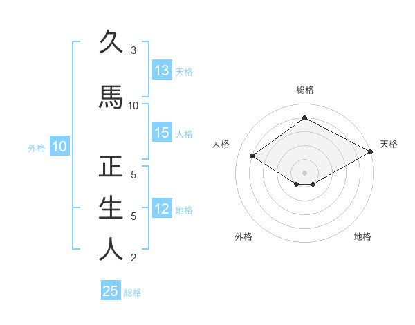 久馬 正生人さんを姓名の画数から五運を鑑定
