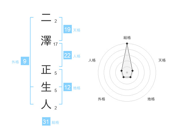二澤 正生人さんの総格は31画の5点!