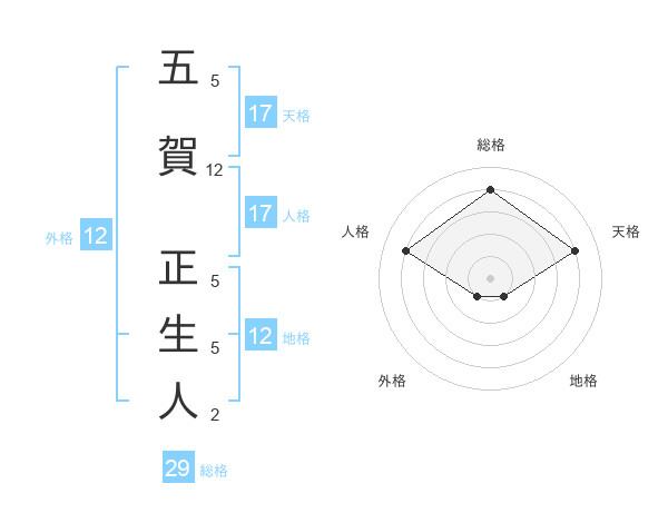 五賀 正生人さんを姓名の画数から五運を鑑定