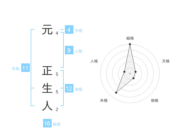 元 正生人さんの外格は11画の4点!