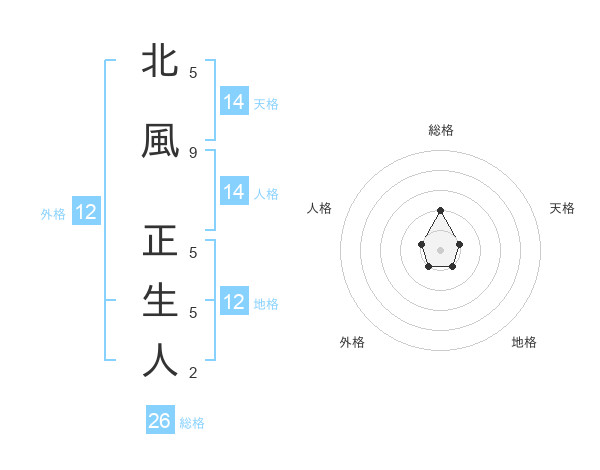 北風 正生人さんの総格は26画の2点!