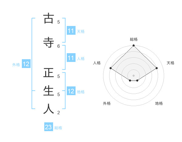 古寺 正生人さんの総格は23画の5点