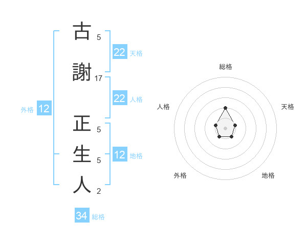 古謝 正生人さんの人格は22画の1点!