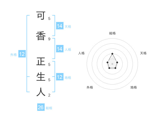 可香 正生人さんの総格は26画の2点!