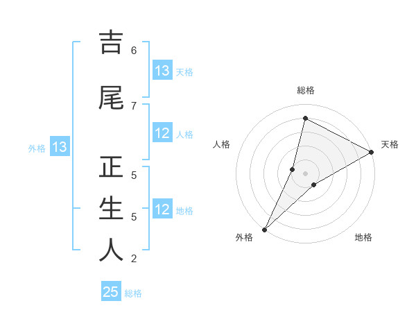 吉尾 正生人さんの天格は13画の5点!