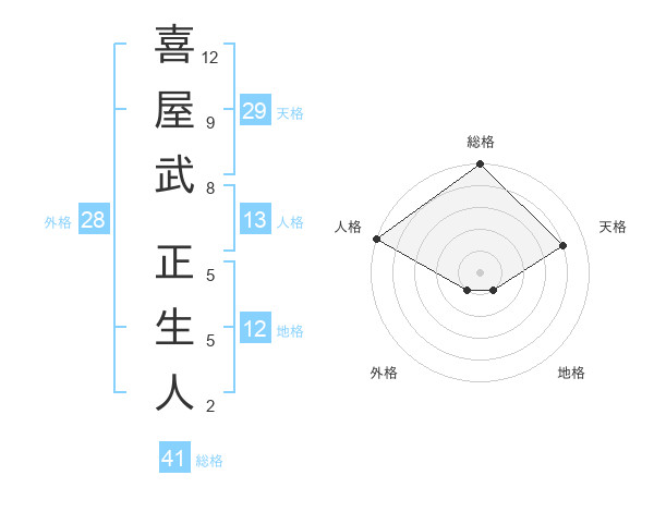 喜屋武 正生人さんを姓名の画数から五運を鑑定