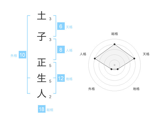 土子 正生人さんの総格は18画の4点!