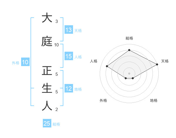 大庭 正生人さんを姓名の画数から五運を鑑定