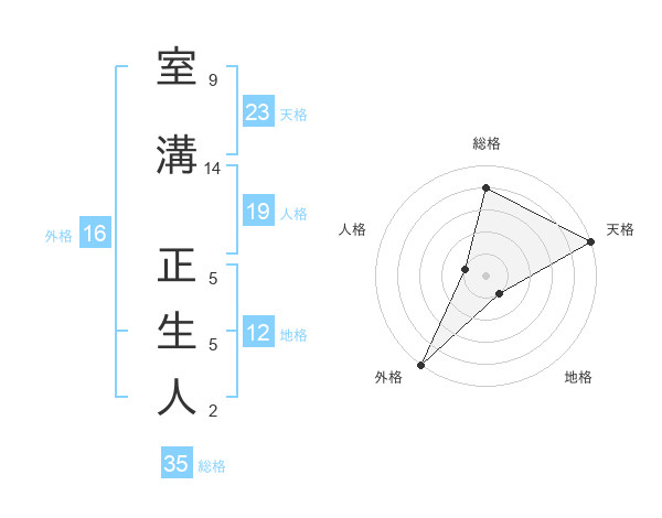 室溝 正生人さんを姓名の画数から五運を鑑定