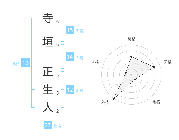 寺垣 正生人さんの天格は15画の4点!