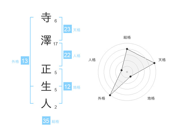 寺澤 正生人さんの総格は35画の4点!