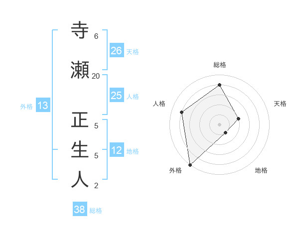 寺瀬 正生人さんを姓名の画数から五運を鑑定