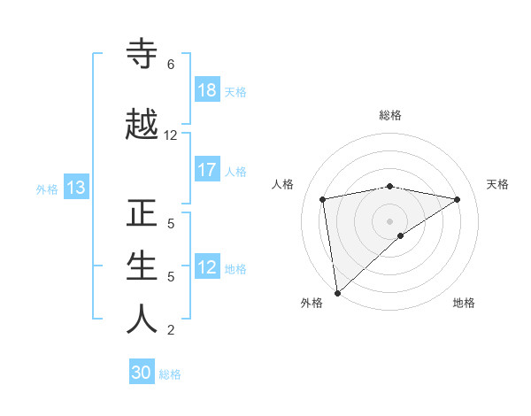 寺越 正生人さんの天格は18画の4点!