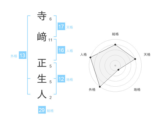 寺﨑 正生人さんを姓名の画数から五運を鑑定