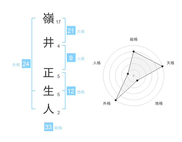 嶺井 正生人さんの天格は21画の5点!