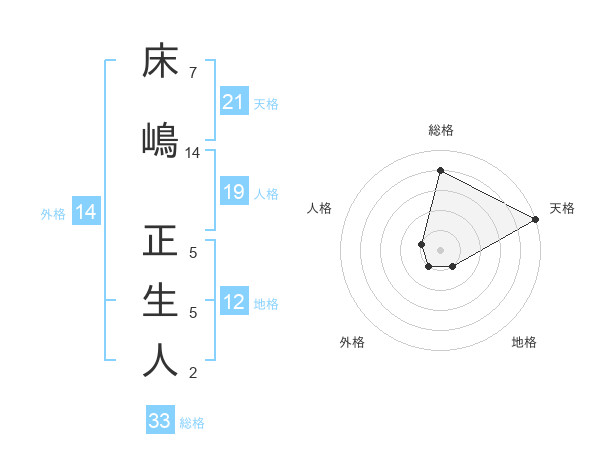 床嶋 正生人さんの総格は33画の4点!