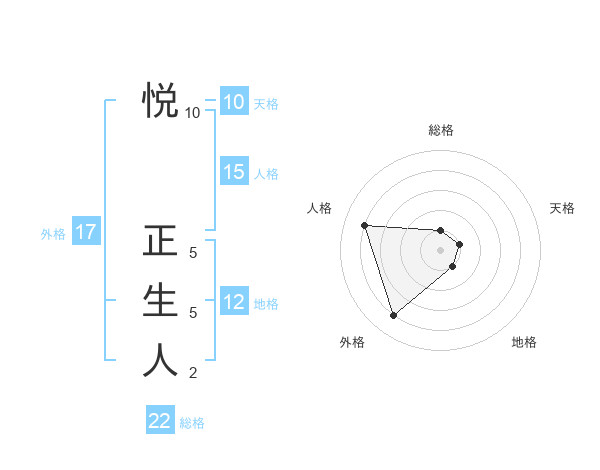 悦 正生人さんの総格は22画の1点!