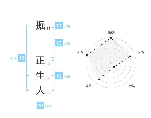 掘 正生人さんの総格は23画の5点!