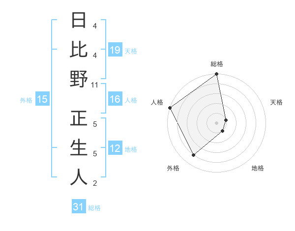 日比野 正生人さんの天格は19画の1点!