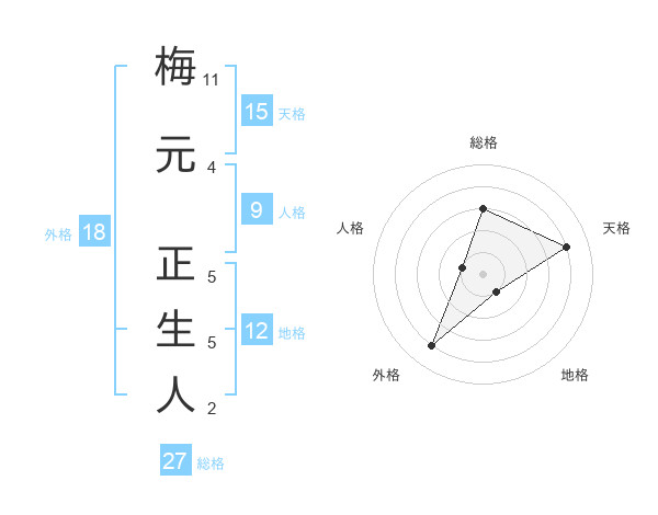 梅元 正生人さんの天格は15画の4点!