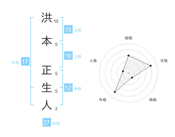洪本 正生人さんを姓名の画数から五運を鑑定