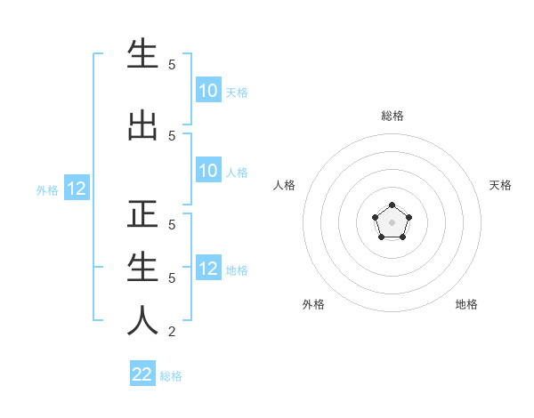 生出 正生人さんの総格は22画の1点!