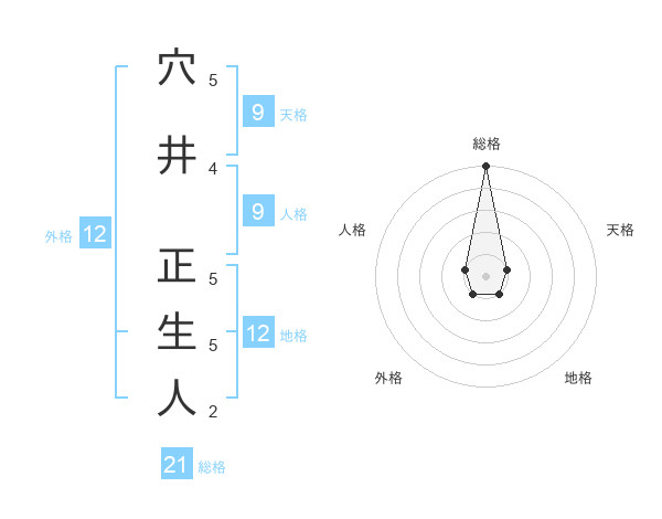 穴井 正生人さんの総格は21画の5点!