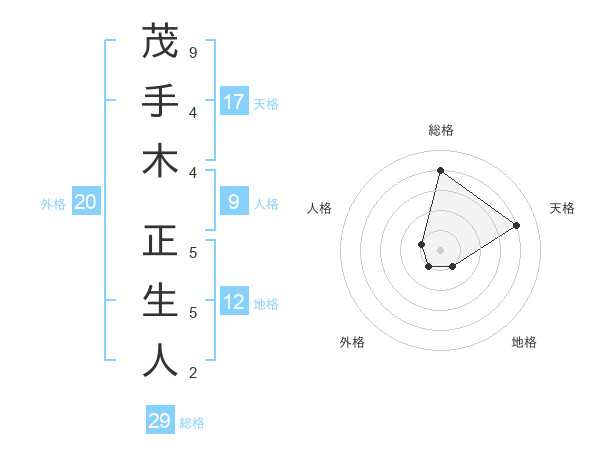 茂手木 正生人さんを姓名の画数から五運を鑑定