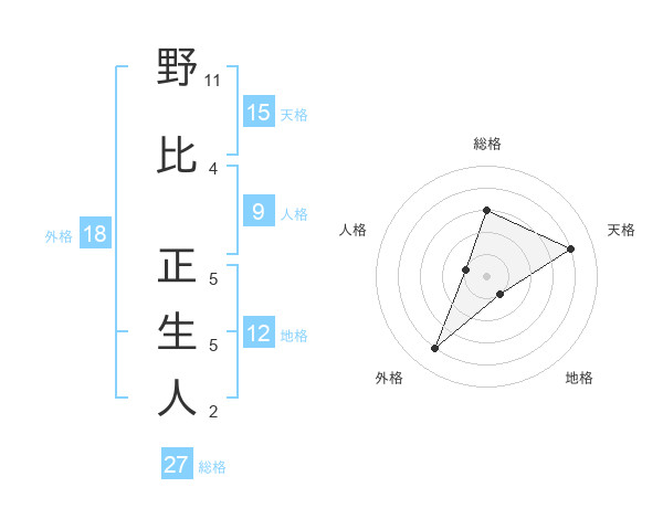 野比 正生人さんの総格は27画の3点!