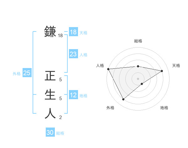 鎌 正生人さんの人格は23画の5点!