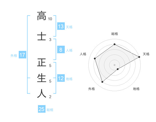 高士 正生人さんの天格は13画の5点!