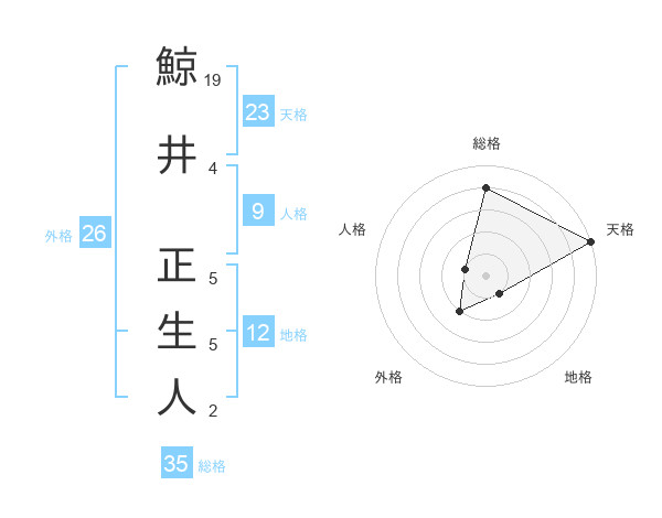 鯨井 正生人さんの天格は23画の5点!