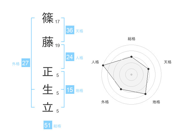 篠藤 正生立さんを姓名の画数から五運を鑑定