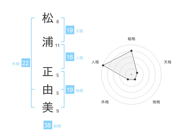 松浦 正由美さんの外格は22画の1点!