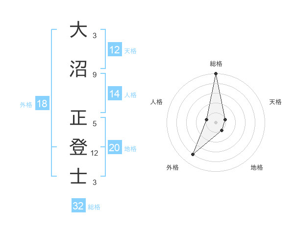 大沼 正登士さんの総格は32画の5点!