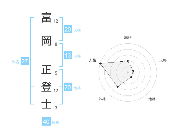 富岡 正登士さんを姓名の画数から五運を鑑定